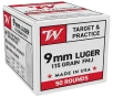 50 Rounds of 9mm Ammo, 100 Rounds of 9mm Ammo, 200 Rounds of 9mm Ammo, 250 Rounds of 9mm Ammo, 300 Rounds of 9mm Ammo, 9mm 147 Grain Ammo