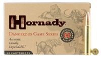 The Hornady performance ammunition drives a 270 gr (17 g) SP-RP bullet at 2,840 ft/s (870 m/s) and the 300 gr (19 g) DGS and DGX bullets at 2,660 ft/s (810 m/s).